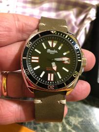 Bellissino Mondia 1946 stile vintage, orologio militare automatico con cassa da 42 mm, ghiera unidirezionale ,wr 200 metri, corona s vite e cinghino in cuoio. Movimento seiko NH35