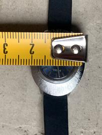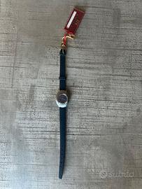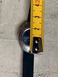 Vendo sofisticato orologio da donna marca Monil (orologi svizzeri di precisione), movimento carica manuale. Preziosa cassa in acciaio cesellato e quadrante cangiante blu. Usato ma perfettamente funzionante e revisionato prima di metterlo in vendita. Dimensioni della cassa: 2x3 centimetri e 2x2,5 centimetri.