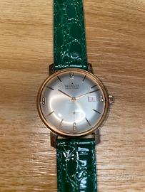 Orologio monvis carica manuale con datario, orologio funzionante ma non mai stata fatta manutenzione, cassa con segni di deterioramento vetro con qulche riga