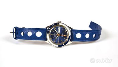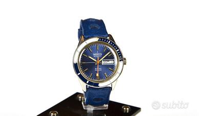 Orologio Monvis, diver vintage, cassa acciaio da 38 mm. senza corona, perfettamente funzionante, condizioni perfette sia esteticamente che meccanicamente, cinturino rally d'epoca. Scambio a mano o spedisco previo bonifico.