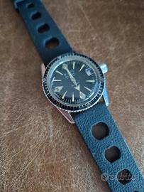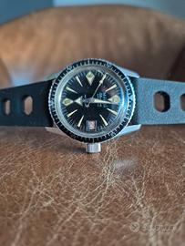 Monvis Monvis Professional Brand:Monvis Typology:Orologio subacqueo vintage Year:1960 Monvisè ormai un marchio molto noto tra i collezionisti di tutto il mondo. Registrato a Bienne, in Svizzera, nel 1962 è un marchio commercializzato principalmente nel territorio italiano. Ilsubacqueo d'epocache abbiamo in vendita è una vera chicca. Questo subacqueo risale infatti alla prima produzione di Monvis e presenta la tipica cassa da immersione professionale e l'aspetto degli anni '60. È alimentato dal famoso calibro AS 1701. Gli indici al trizio, venati di giallo zucca, risaltano sul quadrante nero. La cassa in acciaio da 38 mm ha fondello e corona a vite, come richiesto dai subacquei professionisti. Il nome "Glucydur" sul quadrante si riferisce a Glucydur, il nome commerciale di una lega metallica con un basso coefficiente di dilatazione termica, utilizzata per realizzare bilancieri e altre parti degli orologi meccanici. Glucydur è un bronzo al berillio; una lega di berillio, rame e ferro. Oltre al suo basso coefficiente di dilatazione termica, alla sua durezza (400 Brinell), alla non magnetizzabilità e alla resistenza alla deformazione e al danno. Glucydur è anche resistente alla corrosione ed è piuttosto inerte dal punto di vista chimico. Un vero subacqueo dall'aspetto militare, degno di qualsiasi collezione che si rispetti REVISIONATO NON TESTATO PER ACQUA ! REGOLE PRE VENDITA DA SEGUIRE Sono un privato, vendo oggetti della mia collezione personale o acquistati presso fiere Non posso emettere fattura L'oggetto è venduto con formula AS IS, visto e piaciuto L'oggetto è venduto con esclusione di qualsiasi forma di garanzia post vendita L'oggetto viene impacchettato in modo professionale La merce viaggia a rischio e pericolo dell'acquirente, non rispondo per eventuali disservizi/danneggiamenti causati dal corriere/poste Saranno gli stessi vettori, per legge, a rispondere dei disservizi e danneggiamenti Non effettuo in alcun
