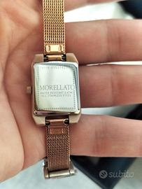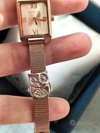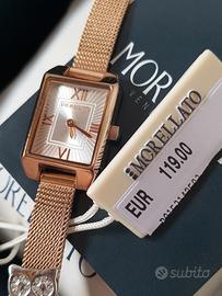 Orologio da donna Morellato RO153142503, collezione Sensazioni, analogico, in acciaio, PVD oro rosa. L'orologio è caratterizzato da un pratico cinturino in acciaio inossidabile, con chiusura a clip. La cassa, contiene un raffinato quadrante argento e monta un resistente vetro minerale. L'orologio è resistente all'acqua fino a 3 АТМ. Compreso nel prezzo è lo charm Morellato a forma di gufetto. Indossato per meno di un mese, l'unico "difetto" riportato sono i segni della piega del cinturino INTERNO. PARI A NUOVO. L'orgoglio verrà venduto con la sua scatola originale, il cuscinetto riportante il nome del brand. Orologio provvisto di batteria, PERFETTAMENTE FUNZIONANTE.