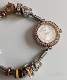 Orologio al quarzo originale Morellato "Drops" - braccialetto in acciaio con chiusura a moschettone - nel bracciale sono inseriti dei "Drops" a forma di cuore e stella - se ne possono aggiungere altri - quadrante in madreperla - funzionante - usato - con alcuni segni di usura come da foto