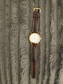 Cinturino: L'orologio è abbinato a un cinturino in pelle marrone con cuciture bianche a contrasto.