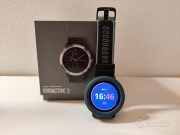 Garmin Vivoactive 3 con protezione orologio, scatola, istruzioni e cinturino originale di ricambio usato molto poco misura cm 4.5 funziona perfettamente