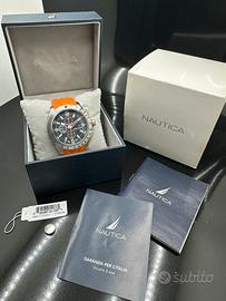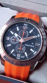Orologio da polso con cronografo Nautica A17568G, movimento Japan al quarzo, bracciale in gomma arancione