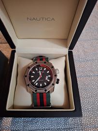 orologio uomo Nautica quadrante nero ottime condizioni cinturini canvas colorazione gucci completo di scatola e cofanetto movimento al quarzo pagamento paypal
