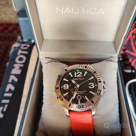 Orologio Nautica A15576G In Buone Condizioni Con tre cinturini: uno in silicone rosso e due di pelle mai usati bianco e nero.Orologio con data e resistente all' acqua fino a 100 m.