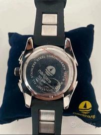 Orologio mai indossato. Navigare Chrono 44mm. Cassa accciaio lucida e cinturino in gomma. Ghiera girevole. Impermeabilità 10ATM. Orologio al quarzo. L'orologio viene venduto con batteria nuova.