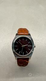 Orologio Nixon Time Teller con cinturino in pelle marrone.