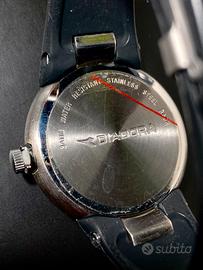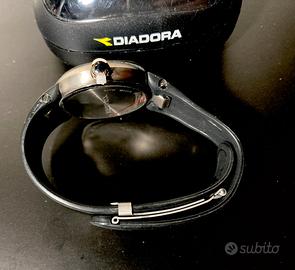 Orologio nuovo con scatola e istruzioni originali con logo. Cassa: Rotonda in acciaio inossidabile satinato, con un diametro di circa 40 mm. Quadrante: Nero con indici a bastone bianchi e logo Diadora con la tipica "freccia" verde o bianca a ore 12. Cinturino: Realizzato in gomma o silicone nero, integrato nella cassa per un look sportivo. Movimento: Al quarzo giapponese (spesso Seiko/Epson). Resistenza: Impermeabile fino a 3 ATM (30 metri) * Anche ritiro in zona