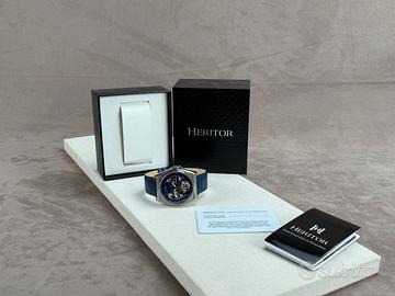 Heritor - Heritor Automatic Daxton Skeleton - Blue - HERHS3003 - Uomo Un magnifico orologio da uomo di Heritor della serie Daxton. Numero di riferimento HERHS3003, l'orologio è alimentato da un movimento automatico che è visibile sia sul retro dell'orologio sia sul fronte grazie alla lavorazione scheletrica del quadrante. Facile da leggere grazie al contrasto con le lancette e gli indici. Dotato di visualizzazione delle 24 ore alla posizione delle 12. Nuovo e mai indossato! L'orologio è dotato di un comodo cinturino in pelle. Viene fornito comprensivo di tutti gli accessori mostrati e documenti in bianco. Orologio: Automatico Materiale cassa: acciaio inossidabile Diametro cassa : ca. 43 mm esclusa la corona. Lunghezza del cinturino: circa 20 cm, incluso orologio. Marca Heritor Genere Uomo Colore del quadrante Blu Scatola originale inclusa Documenti originali inclusi GUARDA I MIEI ANNUNCI !!!!!