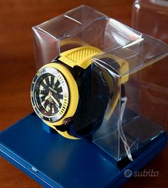 Orologio Poseidon Kienzle NUOVO e MAI neanche indossato. Quartz, cassa acciaio, quadrante nero, cinturino giallo in silicone, 150 metri (15 bar ATM), con pellicole, scatole e cartellino, PERFETTO. 70 euro non trattabile con ritiro in zona, in caso di spedizione + 10 euro e pagamento da concordare. E' tutto esattamente come indicato e sono iscritto dal 2009 quindi no perditempo grazie