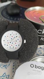 Vendo in confezione originale mai usato orologio marca O Bag con cinturino in silicone. Cinturino nero e sfondo con puntini colorati.