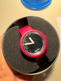 Orologio Fullspot (O clock) con cinturino in silicone taglia S colore bordeaux, cassa specchiata con lancette che si illuminano al buio. Le pile vanno sostituite. Confezione originale.
