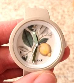 Orologio OClock, cinturino in silicone di colore beige, taglia S, bel quadrante con disegnato un ramo di pianta di limone, indossato una o due volte, condizioni come nuovo, batteria nuova, senza scatola originale, ma inviato in una bella scatolina.