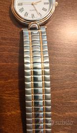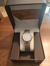 Orologio Oleg Cassini vintage unisex. Cassa in acciaio rotonda da 33 mm., movimento al quarzo, cinturino in acciaio inox oro e argento regolabile.