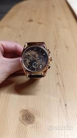 orologio da polso da uomo cronografo OLEVS con cinturino in pelle marrone NUOVO mai indossato senza scatola