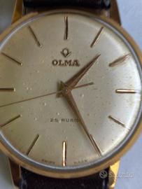 Bellissimo orologio olma meccanico swiss made 25 rubini .. perfettamente funzionante con cassa placcato iro 20 micron di 35 mm senza corona.. con segni del tempo ma niente di brutto..