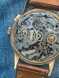 Orologio cronografo omega 33.3, meccanismo appena revisionato perfettamente funzionante, cassa placcata in oro originale omega, restauro da completare, come di vede dalle foto manca pulsante azzeramento, meccanismo molto rara con possibilità di funzionamento anche a monopulsante con azzeramento al centro.. ma i più esperti avranno gia capito guardando il meccanismo.. orologio originale omega con rarissimo calibro 33.3