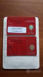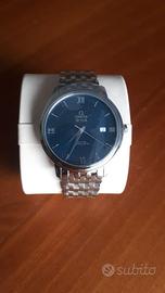Vendo Orologio Omega De Ville Referenza: 424.10.40.20.03.001 Nuovo mai indossato, Orologio ancora con le pellicole N.B. Come si può vedere dalle foto, il fondello è marchiato "LUXOTTICA" Commemorativo da Collezione Movimento a carica automatica Co-Axial calibro Omega 2500 Vetro zaffiro resistente ai graffi bombato con trattamento interno antiriflesso Cassa: Acciaio Diametro cassa: 39,5 mm Distanza tra le anse: 20 mm Spessore: 9.8 mm Colore quadrante: Blu con indici misti Data ore 3 Bracciale in acciaio Tipo di fibbia scorrevole con logo Omega Impermeabilità fino a 3 bar (30 metri ) Corredo completo di: Contro Scatola esterna Scatola in legno laccata, Garanzia Omega Ufficiale Portadocumenti Libretto istruzioni. Prezzo Ufficiale. € 4.200,00. Consegna a mano zona Rovereto (TN)