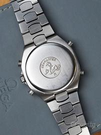vendo splendido omega cronografo acciaio oro fine anni 80 acciaio con inserti in oro, perfettamente funzionante e tenuto benissimo. Completo di libretto e scatola.