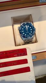 Vendo Omega Seamaster Diver 300M, quadrante blu, versione acciaio con bracciale originale. - Anno: 2023 - Condizioni: mai utilizzato, pari al nuovo - Completo di scatola e garanzia originale (full set) - Movimento automatico Co-Axial Master Chronometer Orologio in condizioni impeccabili, nessun segno, come da negozio. Disponibile per visione di persona. Prezzo: € 4500 leggermente trattabili