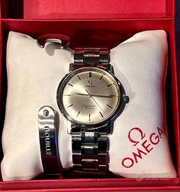 Orologio Omega Seamaster Deville a carica manuale anni 60 circa. Tutto coevo, quadrante, sfere, movimento, corona originali. Perfetto condizioni impeccabili. Corona originale. Revisionato non da molto, quindi nessun lavoro da fare. Possiedo anche piccola fibbia omega per cinturino un cuoio.