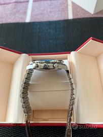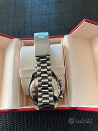 Omega Speedmaster Date, referenza 3511.50. Versione per il mercato giapponese, quadrante reverse panda, calibro Valjoux 7750, diametro 39, vetro zaffiro, anno 1998 approssimativo, bracciale per polsi da 18 cm. L’orologio viene fornito con una scatola Omega service senza i documenti. Milano/Brescia, prezzo 2000€.