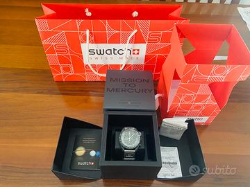 VENDO SPLENDIDO OROLOGIO OMEGA X SWATCH IN BIOCERAMICA. MODELLO MISSION TO MERCURY. MAI INDOSSATO. SEMPRE CUSTODITO NELLA SUA CONFEZIONE ORIGINALE. SONO ANCORA PRESENTI TUTTE LE PELLICOLE PROTETTIVE. L'OROLOGIO E' COMPLETO DI TUTTA LA DOCUMENTAZIONE FORNITA AL MOMENTO DELL'ACQUISTO (LIBRETTO ISTRUZIONI, GARANZIA, DEPLIANT ILLUSTRATIVO). LE FOTO SONO PARTE INTEGRANTE DELL'ANNUNCIO. L'OGGETTO CHE VEDETE IN FOTO E' ESATTAMENTE CIO' CHE RICEVERETE AL MOMENTO DELL'ACQUISTO. PER ULTERIORI INFO E/O CONTATTATEMI.