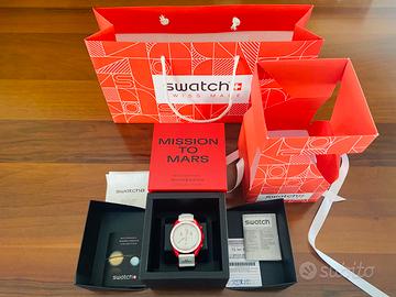 VENDO SPLENDIDO OROLOGIO OMEGA X SWATCH IN BIOCERAMICA. MODELLO MISSION TO MARS. MAI INDOSSATO. SEMPRE CUSTODITO NELLA SUA CONFEZIONE ORIGINALE. SONO ANCORA PRESENTI TUTTE LE PELLICOLE PROTETTIVE. L'OROLOGIO E' COMPLETO DI TUTTA LA DOCUMENTAZIONE FORNITA AL MOMENTO DELL'ACQUISTO (LIBRETTO ISTRUZIONI, GARANZIA, DEPLIANT ILLUSTRATIVO). LE FOTO SONO PARTE INTEGRANTE DELL'ANNUNCIO. L'OGGETTO CHE VEDETE IN FOTO E' ESATTAMENTE CIO' CHE RICEVERETE AL MOMENTO DELL'ACQUISTO. PER ULTERIORI INFO E/O FOTO CONTATTATEMI.