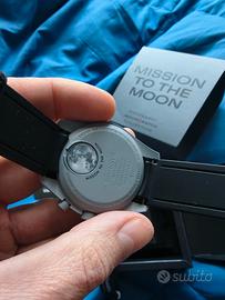 vendo orologio MoonSwatch Mission to The Moon full set scatola libretti è scontrino data d acquisto 9/2023 presso concessionario ufficiale Swatch Milano orologio utilizzato molto poco cinturino originale intonso secondo cinturino gomma After pellicola protettiva vetro ✅ dichiaro che l orologio è originale in ogni sua parte no spedizione no tutto subito scambio a mano in Chieri/Santena (to) prezzo 180€