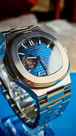 Orologio open heart Artigianale Ispirato al Nautilus – Movimento Seiko NH38 – Blu sfumato nero
