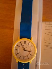 Orologio Ops! Posh con cinturino blu e cassa gialla.