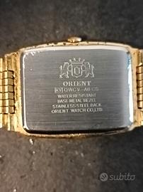 Orologio ORIENT Tank al quarzo primi anni '90, laminato in oro ed ancora in più che buone condizioni estetiche sia cassa che bracciale. Utilizzato da mio padre.