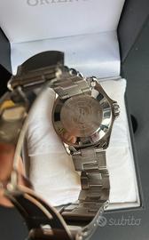 Orologio Orient Makò 2 & Ray 2 blu da polso da uomo e unisex, automatico e a carica manuale meccanico sportivo. Scatola originale compresa di libretto, garanzia e maglie del braccialetto. Qualche piccolo graffio sulla chiusura del cinturino visibile nell’ultima foto.