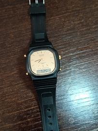 Orologio Analogico/Digitale. Digitale riporta ora, data, e cronometro. Molto bello, pratico, leggerissimo e dimensioni contenute. Preciso di fabbricazione Giapponese della nota marca Orient. Unisce alla praticità un tocco di eleganza.