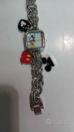 OROLOGIO ORIGINALE DISNEY NUOVO QUADRANTE CON TOPOLINO-CINTURINO IN ACCIAIO, CON CHARMS RAFFIGURATI IL CLASSICO PANTALONCINO ROSSO DI TOPOLINO ANNI 20, LE MITICHE ORECCHIE E UN CUORICINO CON IL LOGO DI TOPOLINO.FUNZIONAMENTO A BATTERIA DA CAMBIARE/INSERIRE