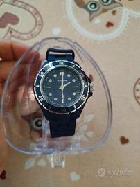 Orologio da donna Ottaviani originale in custodia originale a forma di fiore. Colore blu, cinturino in plastica, brillantini all'interno del quadrante. Attualmente non funzionante, necessita probabilmente di batteria. Mai indossato, presenta ancora pellicola protettiva sul quadrante. Istruzioni e caratteristiche non presenti. €30