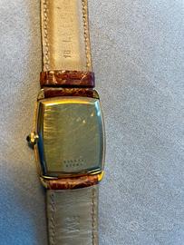 Orologio Baume & Mercier Vintage Lady in oro giallo con cinturino in pelle, ref. 37061 numerato, in perfette condizioni, movimento meccanico a carica manuale, funzionante. Cassa rettangolare in oro giallo , vetro minerale, corona con zaffiro blu , dimensioni 25x33mm. Vendo per inutilizzo a intenditori o collezionisti.