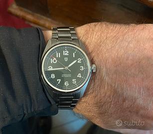 Bellissimo orologio automatico con quadrante verde e numeri arabi in rilievo ispirato al famoso Longines Spirit.