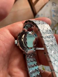Regalo non gradito e quindi mai indossato. Come si vede dalle foto ancora con plastiche e fermi originali. Mai ripeto mai indossato.