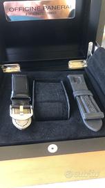 Vendo orologio Panerai PAM 002 ref OP6520 del 1999 con corredo. Quadrante Luminova perfetto. Cassa in ottime condizioni nonostante i suoi 25 anni. Scatola coeva e relativa controscatola con presenza dello sticker originale !!!!! Libretti e garanzia corretta e coeva con l’anno di produzione. Cinturino caucciù originale; cinturino in pelle originale Panerai ma sucessivo rispetto all’orologio. Referenza da collezione con fondello chiuso. Un pezzo raro ormai e di difficilissima reperibilità.