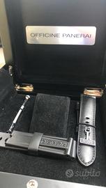 Vendo orologio Panerai Luminor “loghetto” PAM000 con corredo completo del 2014; completo di libretti istruzione, garanzia, portagaranzia, sticker con seriali che combaciano con fondello, cinturno caucciù e cinturino pelle nuovi inutilizzati, fibbia originale, gommone proteggi orologio, cacciavite originale. La cassa da 44mm è perfetta e mai lucidata.