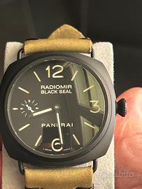 Vendo raro Panerai con cassa radiomir, ref 00292, primo orologio con cassa in ceramica prodotto da Panerai. Quadrante sandwich, ottime condizioni generali, full set, scatola, sticker, garanzia etc, cinturino originale in pelle( taglia xs), cinturino extra artigianale,fibbia originale