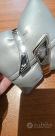 orologio rigido mai usato. in un lato ci sono i brillantini che si muovono veramemte bello. ovviamente è in acciaio.. la batteria è scarica andrebbe messa una nuova..