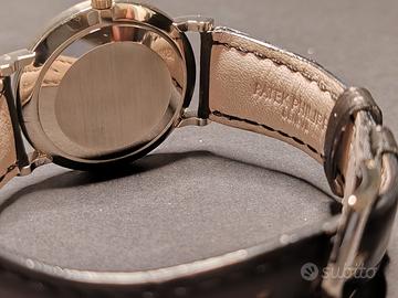 L’orologio si presenta con cinturino originale Patek Philippe in pelle e fibbia in oro bianco, completo di scatola originale della maison. Perfetto per intenditori e collezionisti che cercano raffinatezza, storia e autenticità in uno dei modelli più amati della tradizione ginevrina.