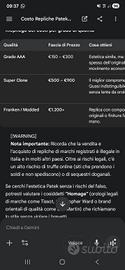 vendo orologio patek philippe semi originale... nuovo costa 1400 comprato a milano NO PERDITEMPO TRATTABILE