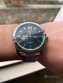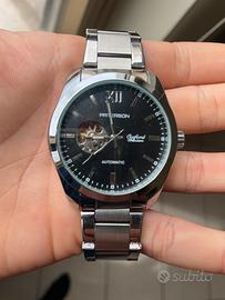 Vendo orologio Paterson automatico in ottime condizioni, usato pochissimo e perfettamente funzionante. ✔️ Movimento automatico (si carica con il movimento del polso) ✔️ Quadrante nero elegante con meccanismo a vista (open heart) ✔️ Cassa e cinturino in acciaio inox ✔️ Stile moderno e raffinato, adatto a ogni occasione ✔️ Vetro in ottime condizioni (nessun graffio evidente) Orologio ideale sia per uso quotidiano che per occasioni eleganti o come regalo 🎁 Compreso di maglia aggiuntiva . Vendo per inutilizzo. Spedizione disponibile •Consegna a mano in zona