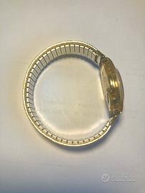 Orologio funzionante al quarzo, cinturino elasticizzato acciaio con trattamento ip oro, quadrante color oro. Misura 25 mm.
